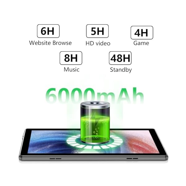 【6000 mAh Long-Life Battery】Tablets Equipped with a 6000mAh Built-in Rechargeable Battery, Enables about 6 Hours Mixed-use when Travelling. Read e-Books, Listen to Music, Watch a Movie, Play a Game, or Surf the Internet, This tablet will be a Perfect Choice.
