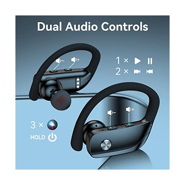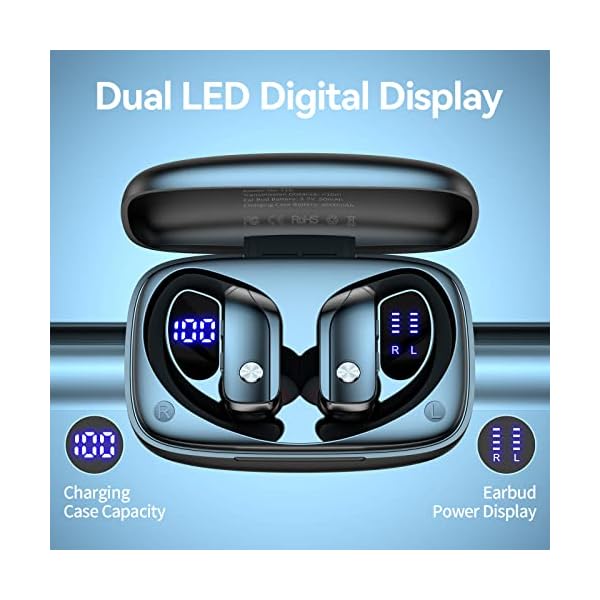 Dual LED Displays Charging Case: Wireless earbuds with LED display make it obvious to show the battery power of the case and ear buds. The remaining power in percentage on the screen is shown to the left of the bluetooth headphones. The right side is assigning to a charging process of each bud, there are separated power consumption indicators by 4 grids in total, each grid represents 25% power of bud. During Charging, the LED indicator light will flash.