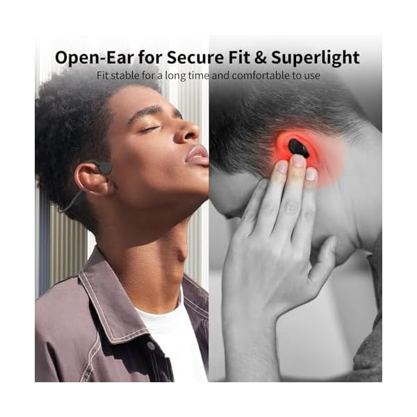 【Safety & Connection】Wearing open ear bluetooth headphones, the surrounding sounds can still be heard, avoiding potential dangers. Using a bluetooth 5.3 chip, the black bone conduction headphones bluetooth connection is stable and fast. High sound quality, giving you a wonderful music experience.