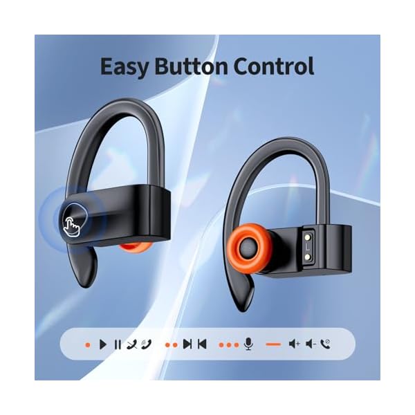 [Waterproof Guard, One-step Pairing] Bolstered by an IPX7 waterproof, workout earbuds give steadfast protection against both sweat and rain, suited for exercise/gym/fitness/workout/running. Adopting Bluetooth 5.3, it ensures a fast and stable connection. Besides, you can use one at a time or both and set up is very easy with your mobile device, laptop, tablet, or any other Bluetooth enabled device. Wireless Bluetooth Buds quickly pair with your device by taking them out from the charging case.