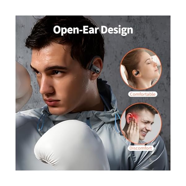 [True Open Ear Headphones, Be Aware of Surrounding] With a completely open design, the way Bluetooth headphones fit into your ear canal not only gives you incredible sound quality it also doesn’t put pressure on your ears thus making them ideal for long term wear. As they don’t go into your ears, they will make you more aware of your surrounding. When listening to music outdoors or driving, you can still hear the sounds of approaching cars or other potential dangers, get through your day safely.