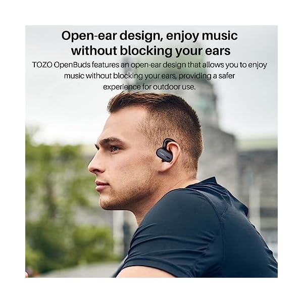 【Dual-Axis Design & Multi-angle Adjustment】The TOZO Open Buds feature a unique dual-axis design that allows for both horizontal and vertical adjustment, providing multiple angles for a customized fit to accommodate different ear shapes and sizes. With this design, you can adjust the ear cups to your preferred position, ensuring a comfortable and secure fit for extended listening sessions.
