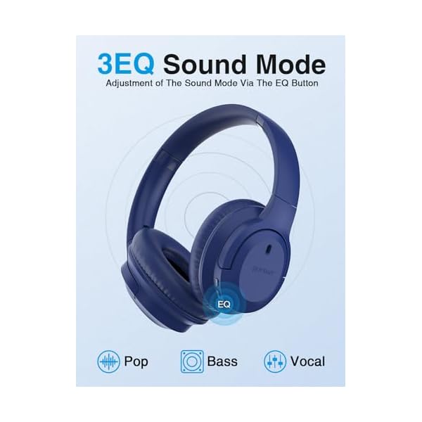 [3 EQ Sound Modes] Headphones over ear have 3 EQ sound modes with which you can freely switch between Bass/Voice/Pop sounds, each mode provides you with the High Definition Audio.