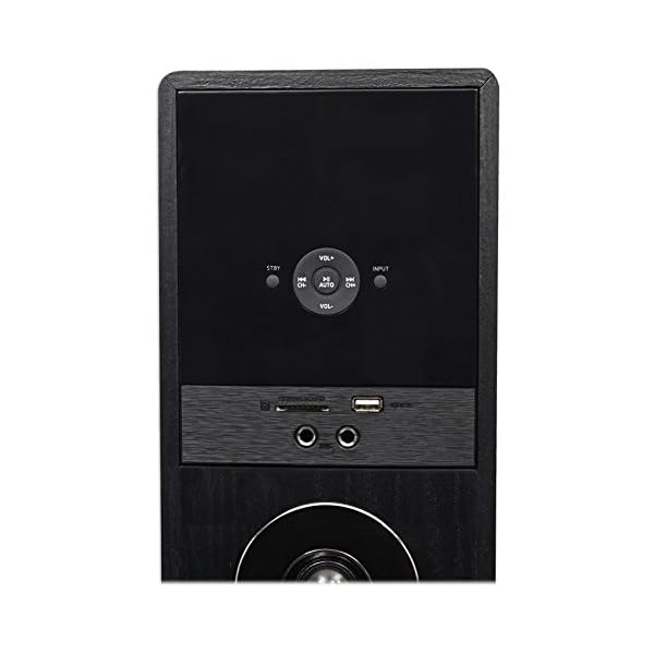 Built in FM radio with crystal clear reception. Cabinet material: Top quality MDF (0.472″ inch thick high-grade MDF). (2) pairs of RCA inputs. (1) 3.5MM aux input. (1) Optical input. Front panel USB and SD inputs. (2) ¼” Mic inputs for karaoke.