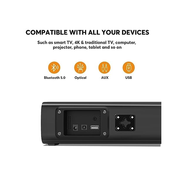 👉Multiple Connection: This speaker support Bluetooth 5.0, Optical, AUX, USB connection; compatible with your smart TV, 4K and traditional TV, computer, projector, phone, tablet and so on.