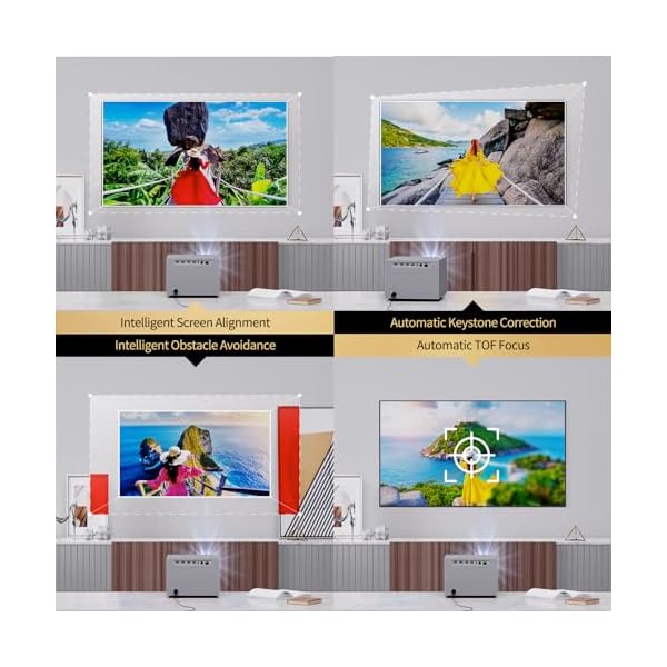 【Perfect Image, 4 Smart Calibration Functions】Auto Focus, Auto Keystone Correction, Intelligent Screen Alignment, Intelligent Obstacle Avoidance. 4 image adjustment settings to achieve perfect images faster