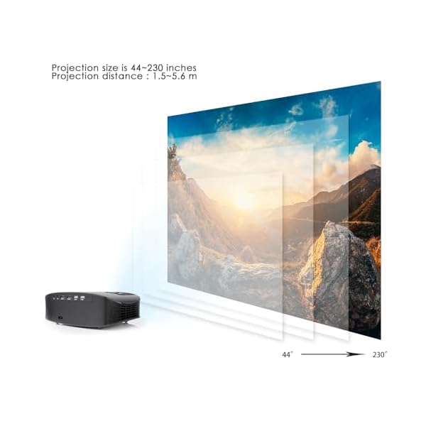230″ Max Screen & Internal Hi-Fi Stereo: Giant 230 inches display size with an aspect ratio of 16: 9/4: 3. The viewing screen is 44″-230″ with distance 4. 9ft-18ft, 98″ screen with distance 10ft is optimal. Complete your home theater equipment with 2 built-in 3W speakers. GooDee updated HI-FI Stereo with SRS sound system, provides fantastic powerful and crystal listening experience even without external speakers.