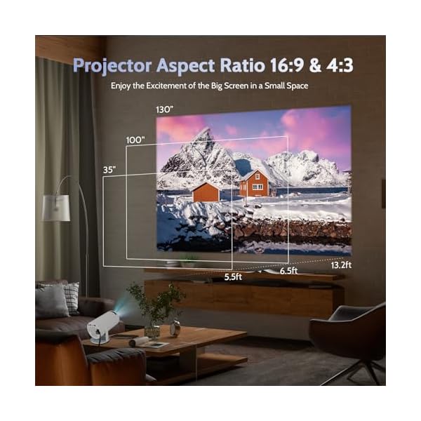 【HD Projection Display】The movie projector provides 40-130 inch projection screen with an optimal projection distance of 5.51 feet. Supporting 4K 1080P, the automatic horizontal keystone correction function provides you the best screen position.