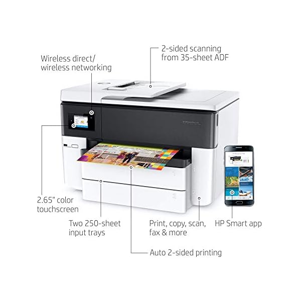 Main functions of this all-in-one wide-format printer: copy, scan, fax, wide-format printing up to 11×17 inches, wireless printing, AirPrint, 2-sided duplex printing, color touchscreen, automatic document feeder, and more.Operating temperature: 5° to 40° C (41° to 104° F)