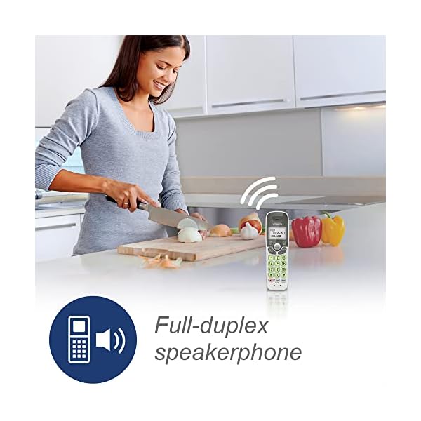 [Speak & Hear simultaneously with Full-Duplex Speakerphone] – Full-duplex handset speakerphone. Enjoy a speakerphone that can keep up with your calls. Increase participation by allowing both ends to speak – and be heard – at the same time for conversations that are more true to life.