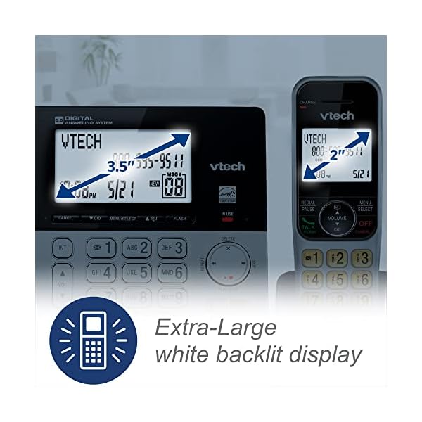 [Backlit Large Screens & Keypad for Better Visibility] – High contrast text on the extra-large blue-white backlit displays on the 2″ handset screen and 3.5″ base screen makes it easy to read incoming caller ID or call history records. Plus, the lighted handset keypad allows for easy dialing in low-light conditions.