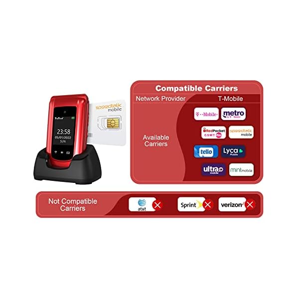 【4G LTE network】This senior 4G basic cell phone is compatible with T-Mobile(Prepaid Plan), MetroPCS, Tello Mobile, Ultra Mobile, SpeedTalk, Simple Mobile, Mint Mobile, Red Pocket(GSMT) and any other carriers that using T-Mobile service; NOT for CDMA Carriers (Verizon, Sprint, Boost, PagePlus) or AT&T.