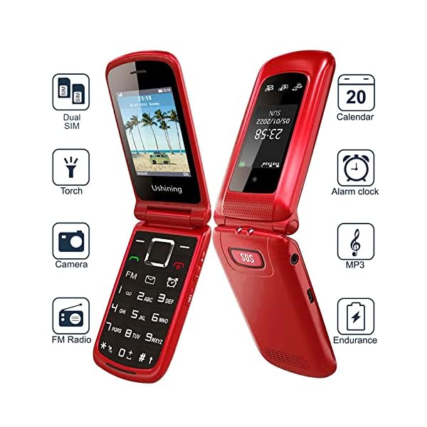 【Built for Seniors】USHINING 4G senior flip phone, easy to use operation system, 2.4 inch screen with big menu icon, large font, high volume and high-definition loudspeakers, equipped with a charging dock, very convenient for the elderly when charge the phone.