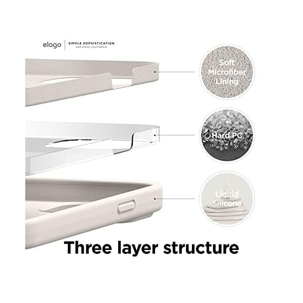 elago Liquid Silicone Case Compatible with iPhone 13 Pro Case (6.1″), Premium Silicone, Full Body Protection – 3 Layer Shockproof Phone Cover, Anti-Scratch Soft Microfiber Lining (Stone)