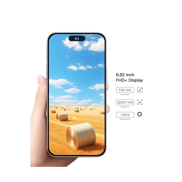 👊【6.82 Inch large screen,Shatter Your Visual Boundary】The 6.82-inch display can further elevate your immersion with wider viewing angles and stunning color fidelity. The 5g unlocked smartphone built a curvature that perfectly conforms to your palm. The 120Hz dynamic refresh rate is compatible with different content going from 60Hz to120Hz.