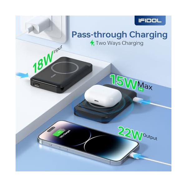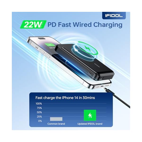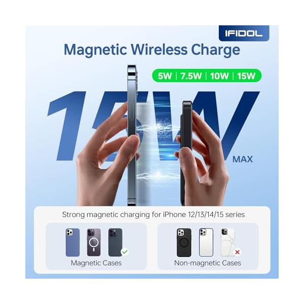 [Strong Magnetic Charger for iPhone]: IFIDOL magnetic power bank is precision-engineered for iPhone 12, 13, and 14 15 series devices and is seamlessly compatible with MagSafe magnetic cases. The meticulous craftsmanship of the magnetic wireless charger ensures easy alignment during the charging as well as a secure and stable connection to your phone.