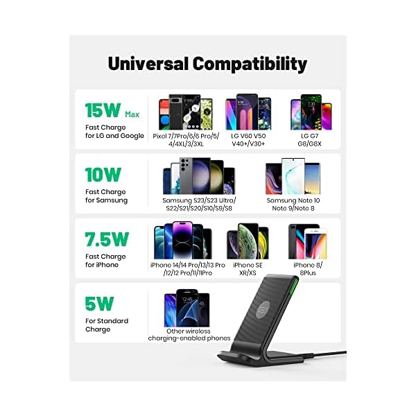 ✅【4 Upgraded Charging Modes】 A high-efficiency chip provides 15W fast charge for LG, 10W fast charge for Samsung Galaxy, 7.5W fast charge for iPhone, and 5W standard charge for any other devices.