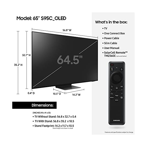 SAMSUNG OLED TECHNOLOGY: Only Samsung can provide this incredible detail and unbelievable screen brightness with pure blacks and more than a billion shades of color powered by QD technology, combined with 8.3 million self-illuminating pixels*