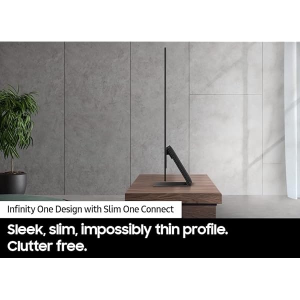 INFINITY ONE DESIGN w/ SLIM ONE CONNECT: Samsung’s Infinity One Design is sleek, slim and impossibly thin; Its strikingly slender design features modern lines and an attachable Slim One Connect solution to neatly organize cords and cables