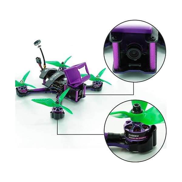【3K Carbon Fiber】 The racing drone is produced by TCMMRC, the frame is made of 3K carbon fiber. Connected by aluminum alloy posts, carbon fiber is low density and high hardness, which can make the flight more stable and not easy to tear, very suitable for drone frame.