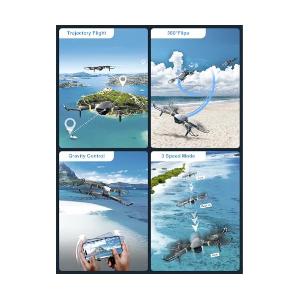 【Best Drone Toy for beginners and Kids】 : Fly this drone is magically simple, just tap the One Key Start/Landing button to start the fly; There are different speed switch, 3-speed modes help the beginners to find his/her way. Altitude hold can maintain the drone at a certain height, which makes it so easy to control and take high quality footage, suitable for kids and beginners.