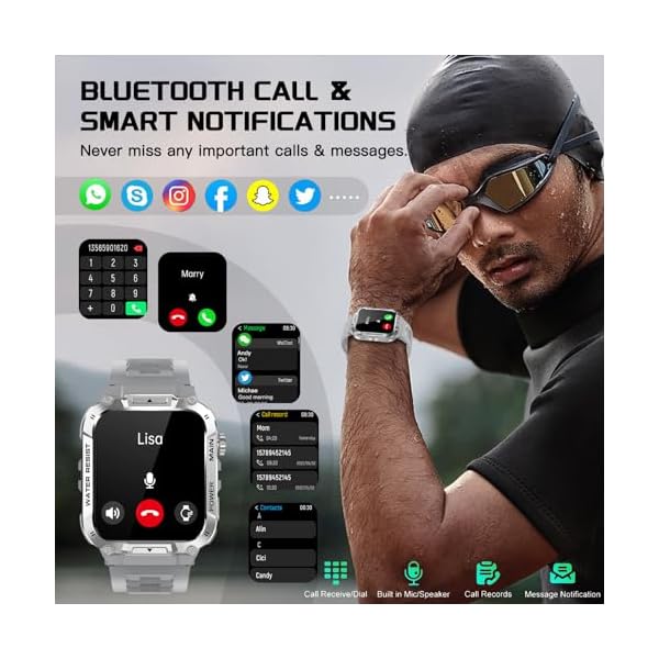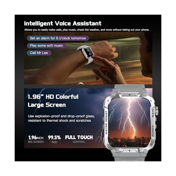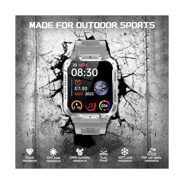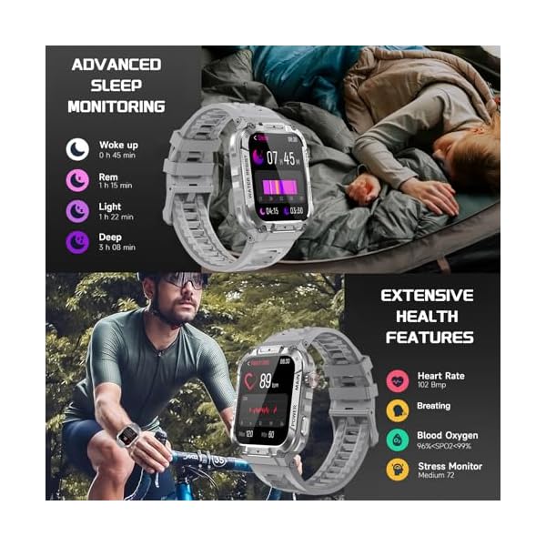 ⌚Dust-proof Waterproof Rugged Gard Smart Watch: The main body of the military fitness watch is made of special composite materials and metal shell, our ultra smart watch for men pass dozens of standard tests including temperature, low pressure, dust-proof, salt spray, fluid contamination. Braved the elements with ease, can battle with you through hot deserts, humid rainforest and polar glaciers.etc. A great IP 68 waterproof Men’s Fitness Watch for exploring and outdoor activities
