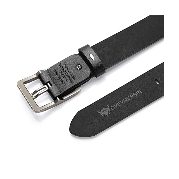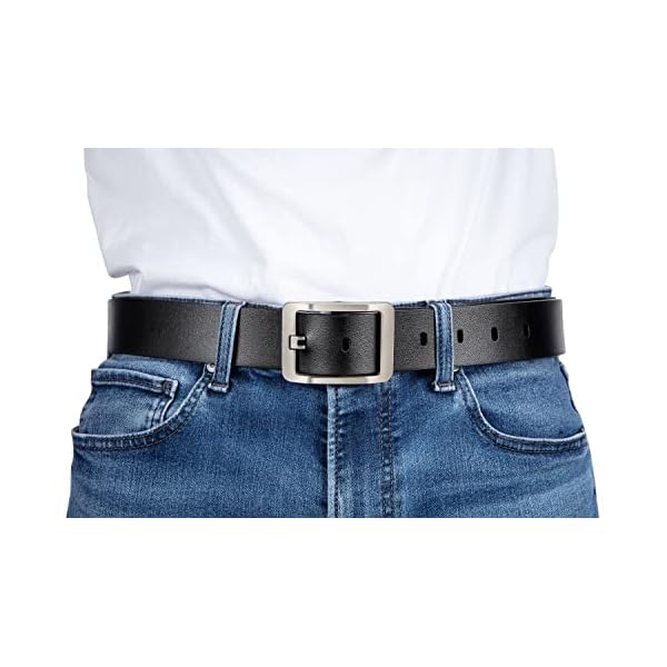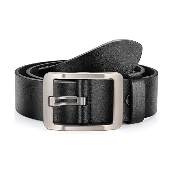 Mens Leather Belt – Black Casual Jeans Work Belts Fashion Classic Design Silver Buckle Large Long Plus Size Man Heavy Duty