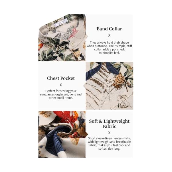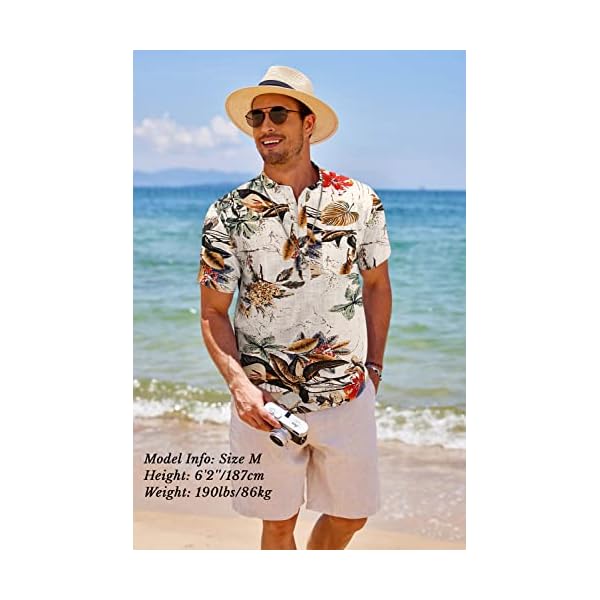 COOFANDY Men’s Cotton Linen Henley Shirt Short Sleeve Hippie Casual Beach T-Shirts with Pocket