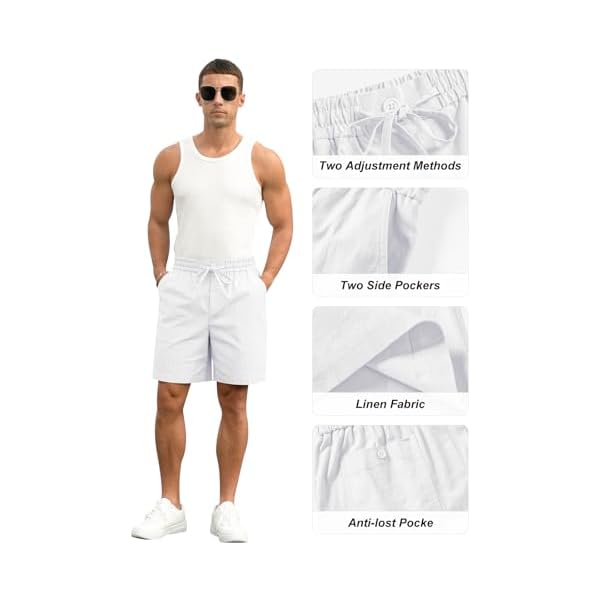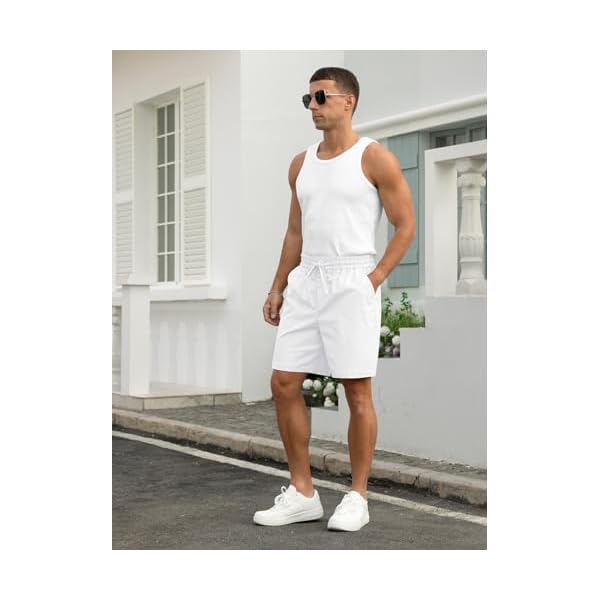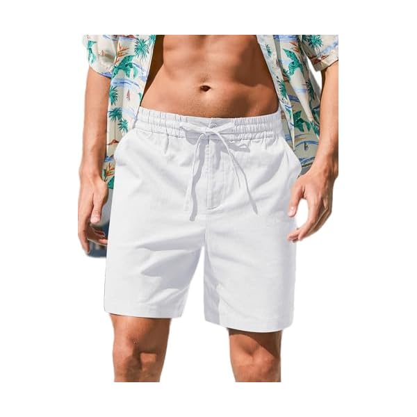 Mens Cotton Linen Shorts Casual Drawstring 7inch Inseam Shorts Stretch Summer Beach Wear