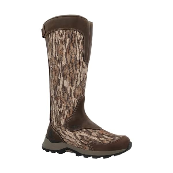 The Rocky Trophy Series Rubber Boot will be your next prized footwear. This rugged boot built on a durable multi-terrain rubber outsole provides comfort and performance through thick brush, swamps, and wetlands keeping you dry and protected when it’s needed most. Waterproof full grain leather and our Guaranteed Rocky Waterproof Construction will allow for the environment to lead your path. Add in 16 inches of high abrasion Mossy Oak Bottomlands covered snake guard and Rocky Thorn & Briar Guard for safety you can trust. YKK back zippers provide a comfortable fit around your calf while keeping a tight seal to prevent any water leakage. A light & flexible cement construction combined with our Rocky Air-Port Lite sponge PU footbed with memory foam ensures all day comfort.