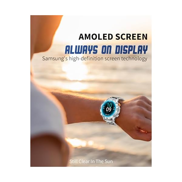 【Rugged Military Smartwatch】PODOEIL latest military mens smartwatch features a state-of-the-art 1.43-inch Amoled HD touch screen with a resolution of 466*466. Providing a clearer display, smooth operation, and an enhanced visual experience. The always-on display ensures constant visibility. With a robust metal shell, android smart watch meets military-grade standards, undergoing rigorous tests for durability, including drilling, crushing, exposure to salt spray, and liquid contamination. It remains functional even in extremely low temperatures. The 380mAh large capacity battery ensures 5-7 days of battery life, 30 days of standby,and a quick 2-hour full charge, alleviating charging concerns.