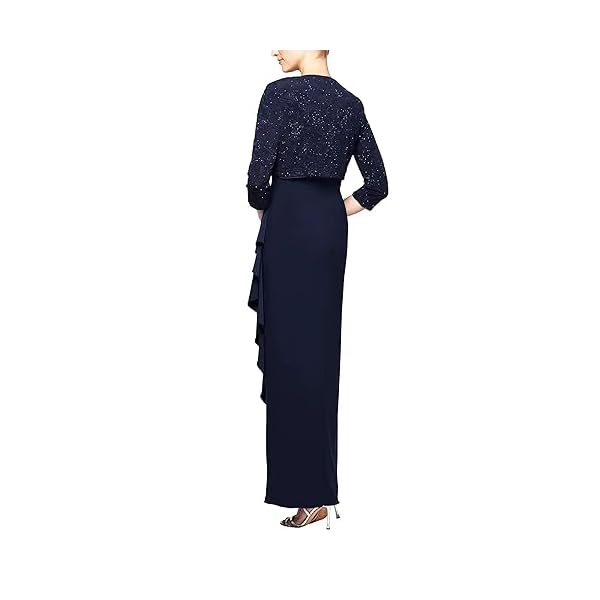 Subtle details shine in the elegant jacket dress. This two piece set features a soft and stretchy lace bodice and bolero jacket with a ruched skirt that covers all the right places. Pair with your favorite silver or nude heels for a stunning head to toe look!