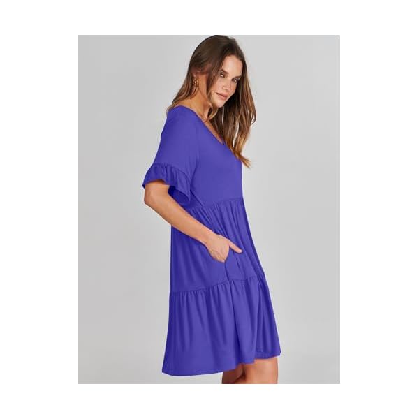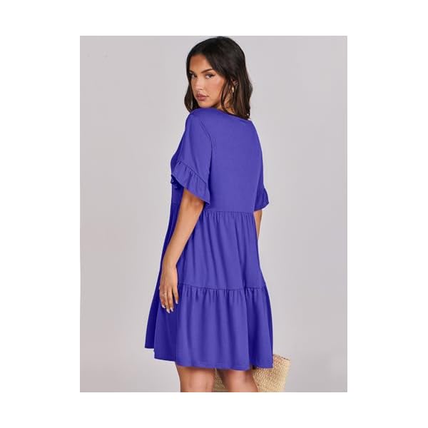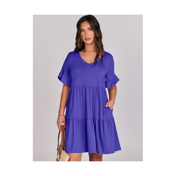 ANRABESS Women’s 2024 Summer V Neck Ruffle Short Sleeve A Line Tiered Flowy Casual Mini Beach Dress with Pockets