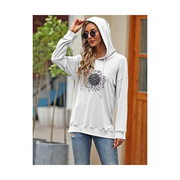 Women Sunflower Graphic Hoodies Long Sleeve Pullover Drawstring Sweatshirt Loose Fit Tunic Tops