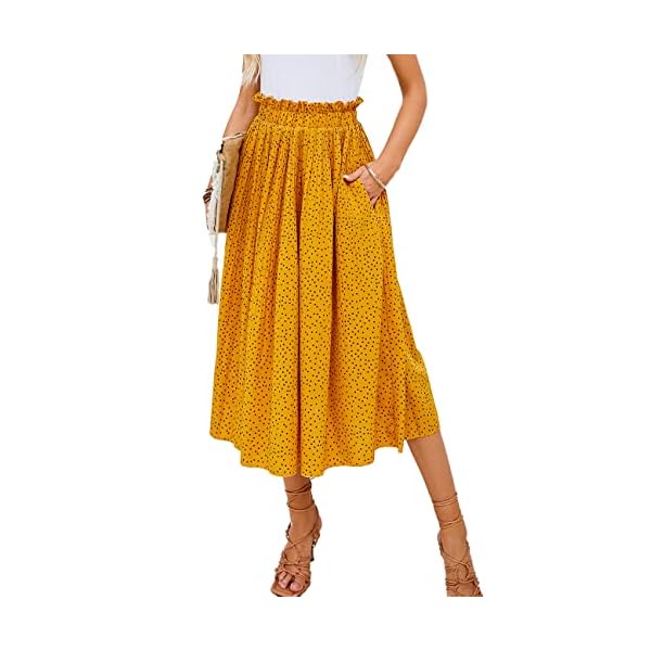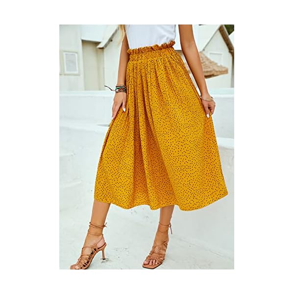 Naggoo Women’s Skirts High Elastic Waisted Casual Skirt Pleated Floral/Solid Midi Skirts with Pockets