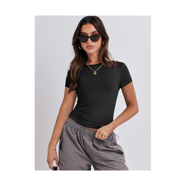 ANRABESS Womens Short Sleeve Slim Fit Crop Top Going Out Tight-Shirts Summer Basic Tees