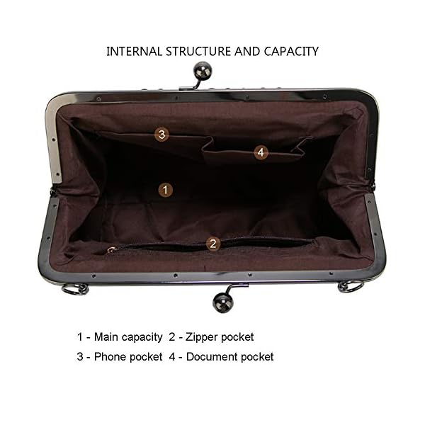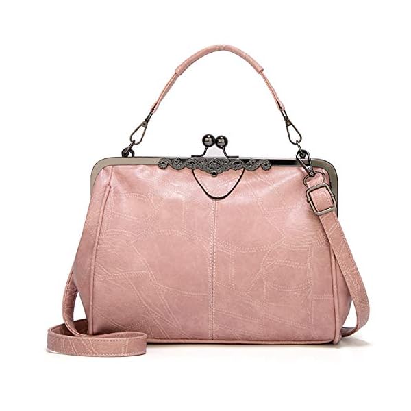 WUDFUME Women’s Retro Kiss Lock Handbags Oil Wax PU Leather Small Tote Purses Satchels Shoulder Bag Crossbody Bags