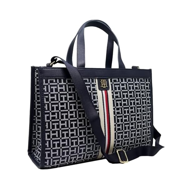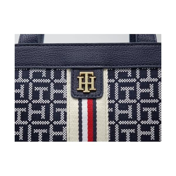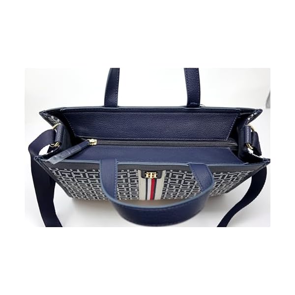 Tommy Hilfiger Women’s Navy Blue White Logo Print Medium Satchel Crossbody Bag Handbag Purse