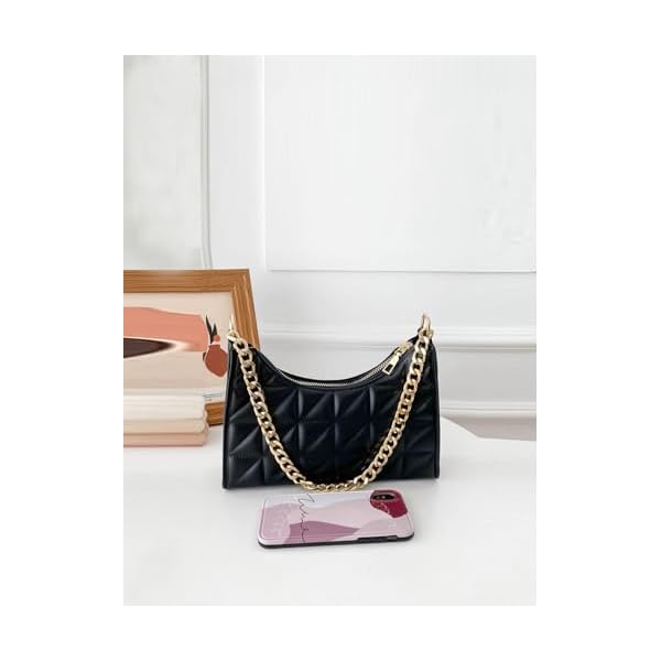 SHENHE Women’s Quilted Chain Strap PU Leather Zip Fly Shoulder Bag Small Purse Handbag