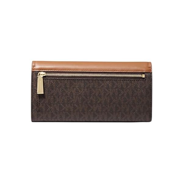 Wallet Logo-print canvas 89.4% coated canvas/9.6% polyester/1% polyurethane Trim: 100% leather Gold-tone hardware 8”W X 4.25”H X 1.5”D Exterior details: back zip pocket Interior details: 2 bill compartments, 12 card slots, center zip compartment Lining: 100% polyester Snap fastening Imported