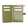 brand logo accent, zipper pull, pebbled finish 5.5in W x 3.5in H 1 interior zip pocket, interior card slots, interior slip pocket