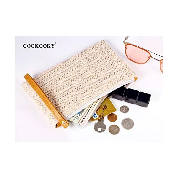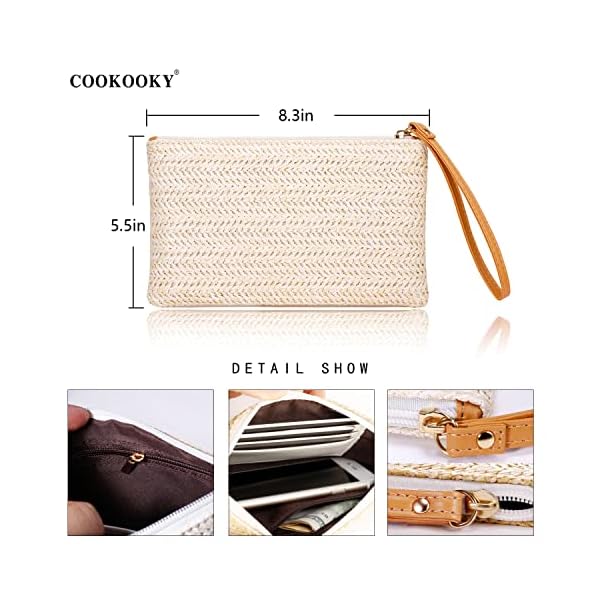 COOKOOKY Womens Straw Clutch Bag Bohemian Summer Beach Straw Purse Zipper Wristlet Wallets for Women