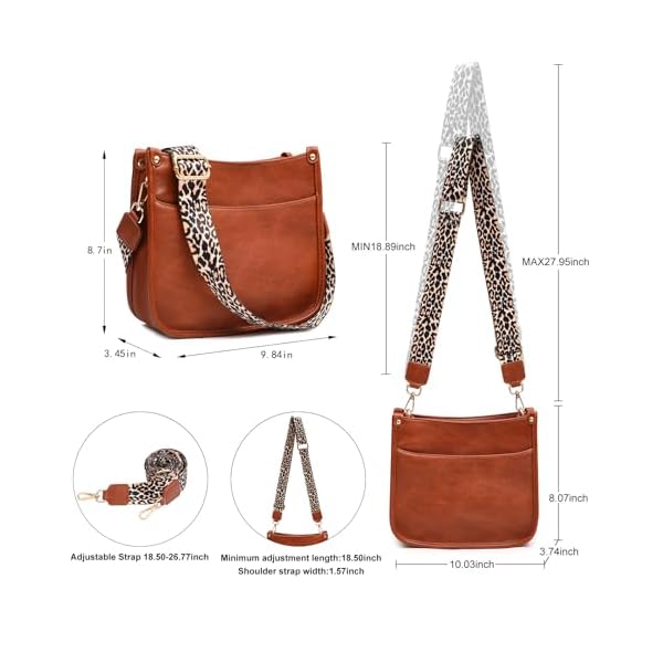 KOGTLA Women’s Crossbody Shoulder Bag with Leopard Guitar Strap,Vegan Faux Leather Purse Handbag Bucket Tote Bag