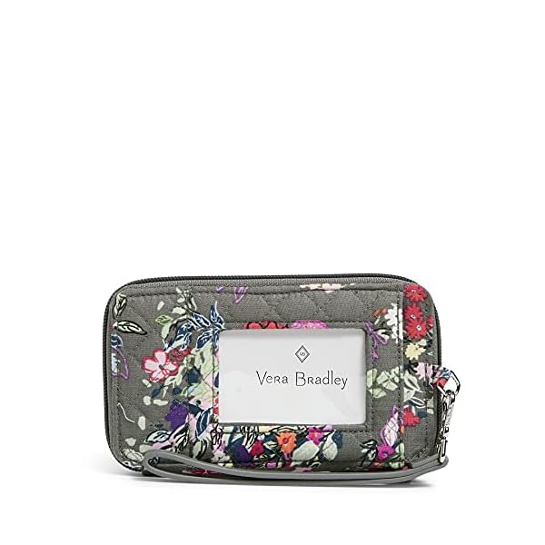 Signature cotton is colorful and lightweight. Provides RFID protection for credit and debit cards. Accommodates an iPhone 8. Phone slip pocket on exterior. 8 credit card slip pockets, 1 slip pocket, 1 bill pocket and an ID window. Pin snap and zip closures. Spot clean with gentle detergent, rinse thoroughly; lay flat to dry Fits most phones including iPhone 5/5S, iPhone 6/6S, iPhone 6+, iPhone 7, iPhone 7+, iPhone X. Vera Bradley has a purse or handbag to suit your needs – whatever they may be. We offer hand bags, clutch purses for women, clutch purse, evening bag, wristlet, wristlet wallet, wristlet keychain, wristlet wallet with cell phone holder, wristlets for women, wristlet strap, and more!