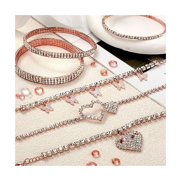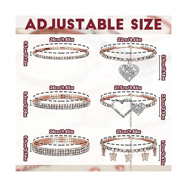 Laumoi 6 Pcs Ankle Bracelets for Women Christmas Rhinestone Stretch Anklet Heart Ankle Bracelets Anklet Jewelry Crystal Foot Chain