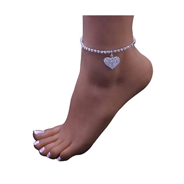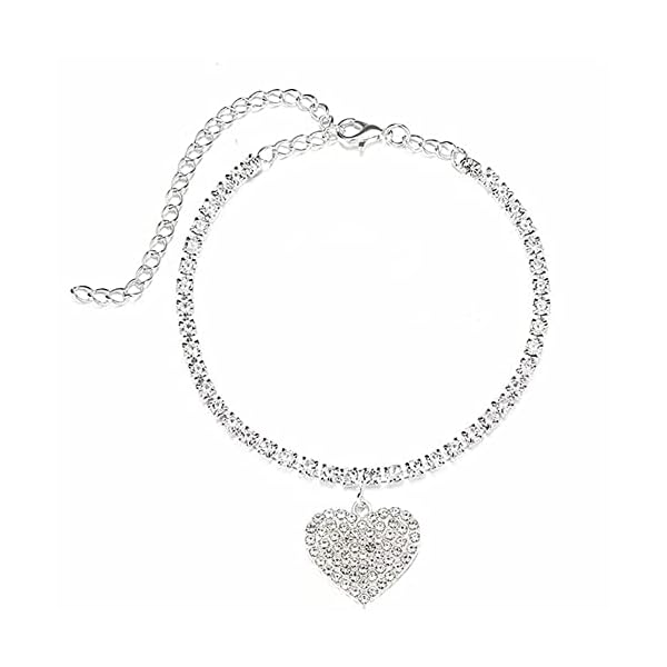 Rhinestone Heart Tennis Chain Anklet Bracelet for Women Girls Sparkly Rhinestone Heart Foot Chain Summer Beach Jewelry
