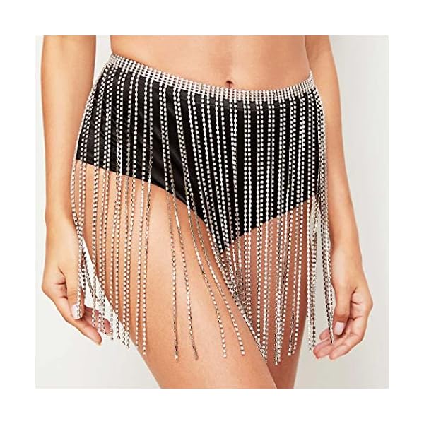 Barode Crystal Tassel Body Chains Belly Dance Skirts Rhinestones Sexy Bikini Summer Beach Hip Waist Chain Nightclub Jewelry Accessories for Women and Girls