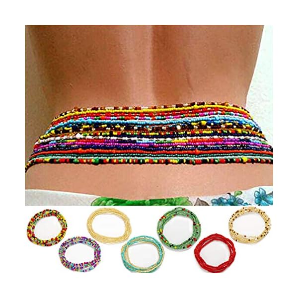 ELABEST African Waist Beads Chain Layered Belly Body Chain Beach 7Pack Waist Jewelry Body Accessories for Women