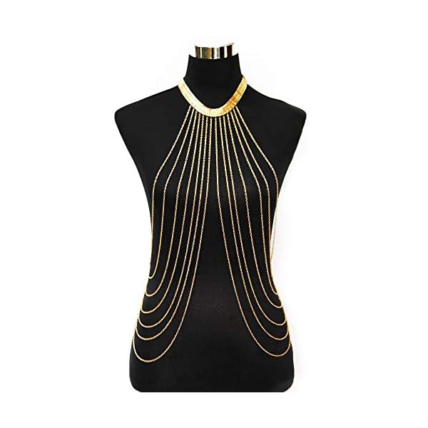 Yomiie Body Chain Layered Gold Tassels Necklace Fashion Jewelry Belly Waist Bra Boho Hot Bikini Beach Harness Anniversary Festival Gift for Women Lady Girls