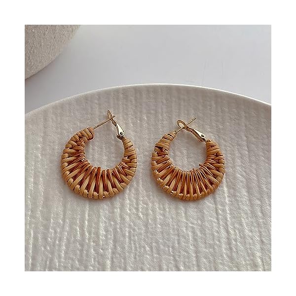 Lightweight Geometric Rattan Earrings for Women Handmade Braid Woven Raffia Straw Wicker Hoop Statement Earrings Summer Jewelry